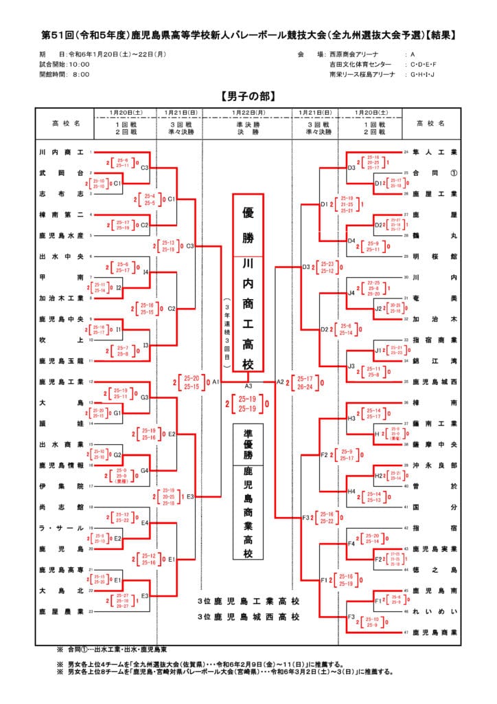 - 【組合せ】第20回 鹿児島県U-14クラブチャンピオンシップ男子バレーボール大会について