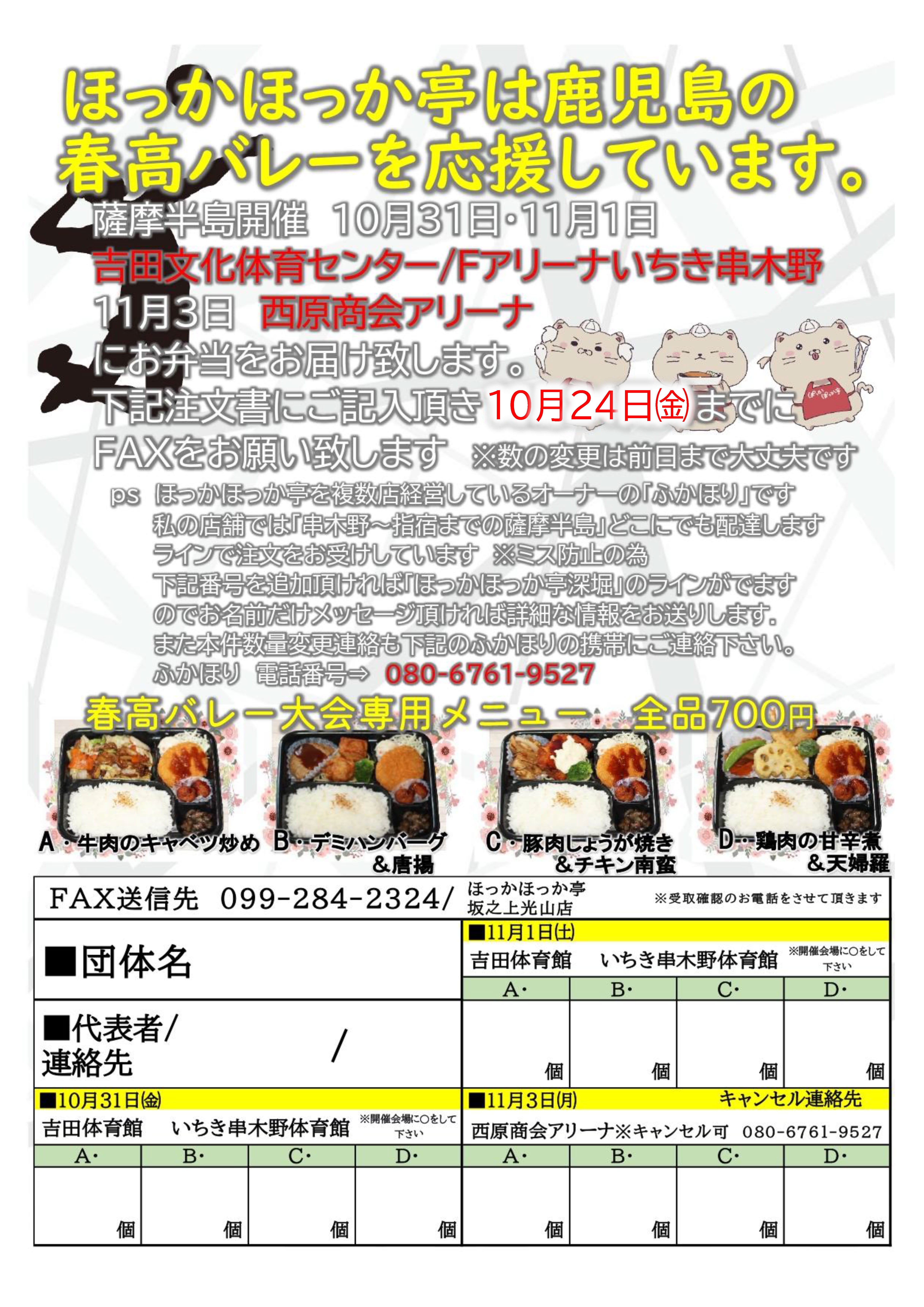 7.大会弁当 | 鹿児島 春高バレーチラシ_大会弁当(申込締切変更版)(PDFファイル)![]() |